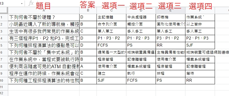 (4)複製整個表格貼到EXCEL或GOOGLE試算表(需先開啟)中 ,如下圖